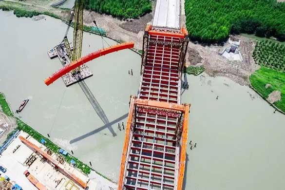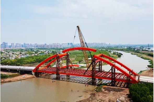 5月9日,随着最后一节拱肋精准就位,由我公司监理的沿沪大道对接胜利路新建工程控制性节点工程--跨吴淞江大桥拱肋顺利合龙,标志着沿沪大道对接胜利路新建工程前期建设基本完成,即将进入后续附属施工阶段,为9月通车奠定坚实的基础。此次拱肋合龙是继3月系梁合龙后的又一重要节点,拱肋是大桥主要承重结构,这次合龙也是钢箱梁系梁拱肋最后一道工序。